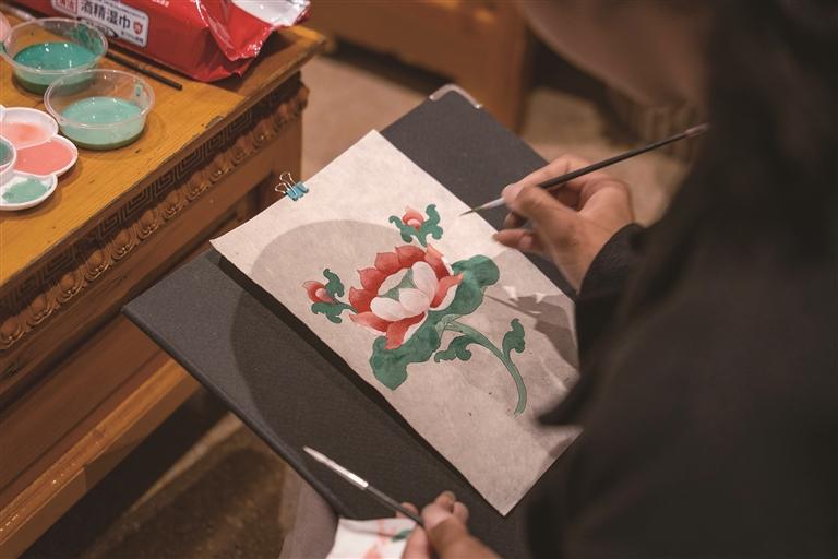 游客在繪制唐卡。