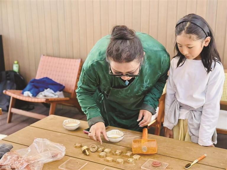 在集中展示區(qū),白納鍛銅技藝的精美器具、達孜章多傳統(tǒng)藏香制作技藝的馥郁芬芳、達孜傳統(tǒng)藏戲服飾制作技藝的精美華服,以及傳統(tǒng)染色、編織技藝等非遺作品琳瑯滿目。其中,最受歡迎的當(dāng)屬現(xiàn)場體驗環(huán)節(jié),在非遺代表性傳承人的悉心指導(dǎo)下,觀眾零距離感受非遺魅力,沉浸式體驗傳統(tǒng)文化的獨特韻味。