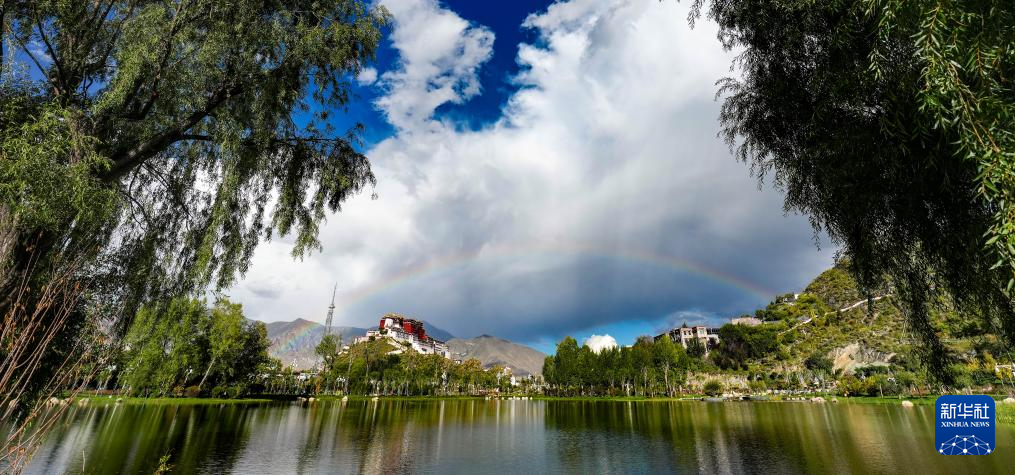 從拉薩團(tuán)結(jié)公園遠(yuǎn)眺彩虹下的布達(dá)拉宮(9月21日攝)。新華社記者 晉美多吉 攝