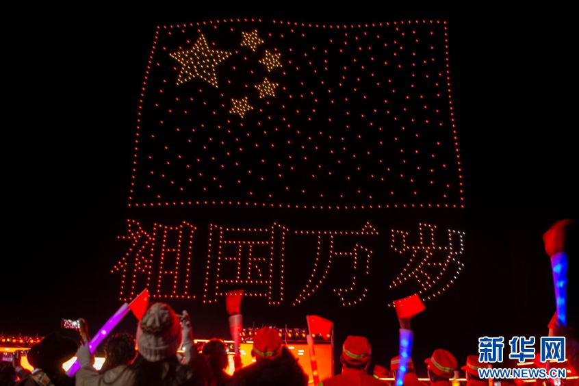 圖為第九屆象雄文化旅游節(jié)開幕式現(xiàn)場(chǎng)的無人機(jī)表演(9月26日攝)。新華網(wǎng) 柑丹鴦琦攝