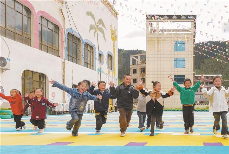 圖為昌都市類烏齊縣重慶雙語幼兒園的孩子們在課間快樂地玩耍。記者 丹增群培 攝 (資料圖片)