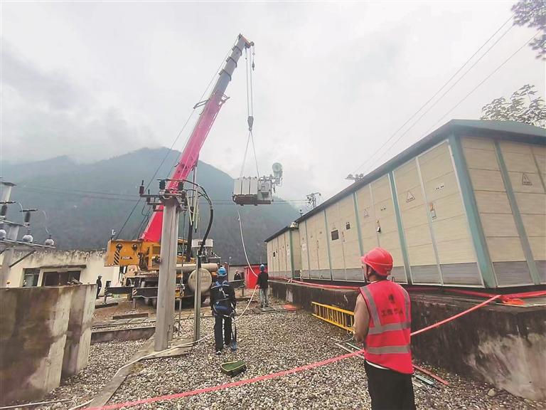 圖為國網(wǎng)察隅縣供電公司工作人員正在對變壓器進(jìn)行改造施工。記者 劉楓 攝
