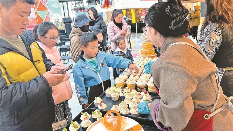 圖為市民駐足選購(gòu)蛋糕的熱鬧場(chǎng)景。記者 平措諾吉 攝