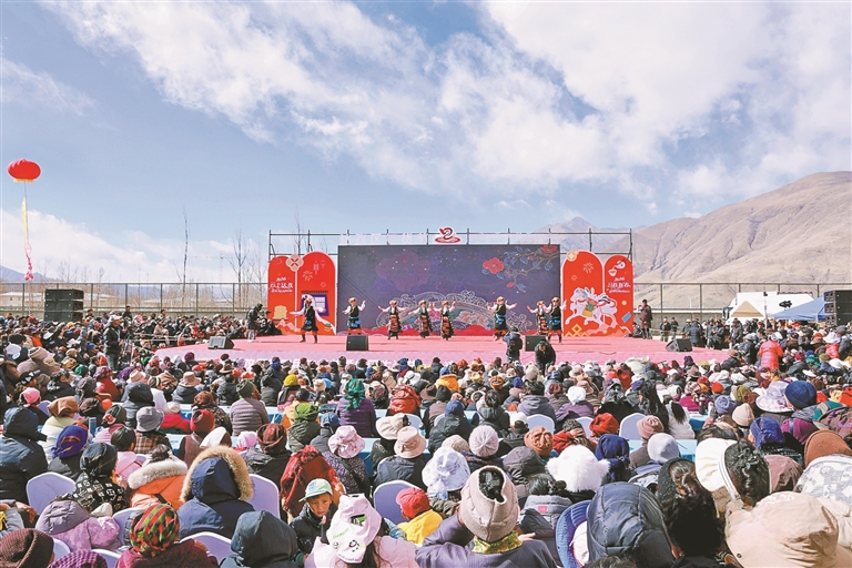 來(lái)自達(dá)孜區(qū)邦堆鄉(xiāng)的普珍阿佳,帶著自家以傳統(tǒng)方法釀制的青稞酒,吸引了不少新老主顧前來(lái)購(gòu)買;“90后”創(chuàng)業(yè)者達(dá)瓦將藏式紋樣與現(xiàn)代設(shè)計(jì)相結(jié)合,制作出的新潮手機(jī)殼、帆布包,成為年輕人爭(zhēng)相選購(gòu)的“尖貨”;書(shū)法家桌前排起長(zhǎng)隊(duì),他們或送春聯(lián)、或?qū)憽案!弊?;藏戲、民歌表演的舞臺(tái)前更是掌聲不斷。