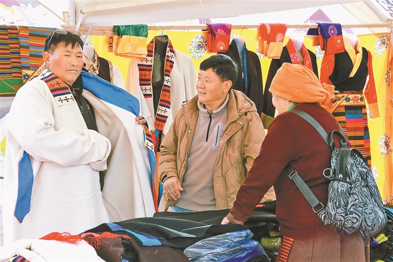 320余個(gè)攤位如繁星般鋪開(kāi),空氣中彌漫著酥油、藏香與干果混合的復(fù)雜香氣。此起彼伏的吆喝聲、討價(jià)還價(jià)聲與孩子們歡快的笑聲交織在一起,為這片集市增添了熱鬧的氣息。短短7天,這場(chǎng)年貨盛會(huì)便吸引客流約13萬(wàn)人次,實(shí)現(xiàn)銷售總額2802萬(wàn)元。這不僅是數(shù)字的躍升,更是“政府搭臺(tái)、商戶獲利、群眾受益”的良性循環(huán)。