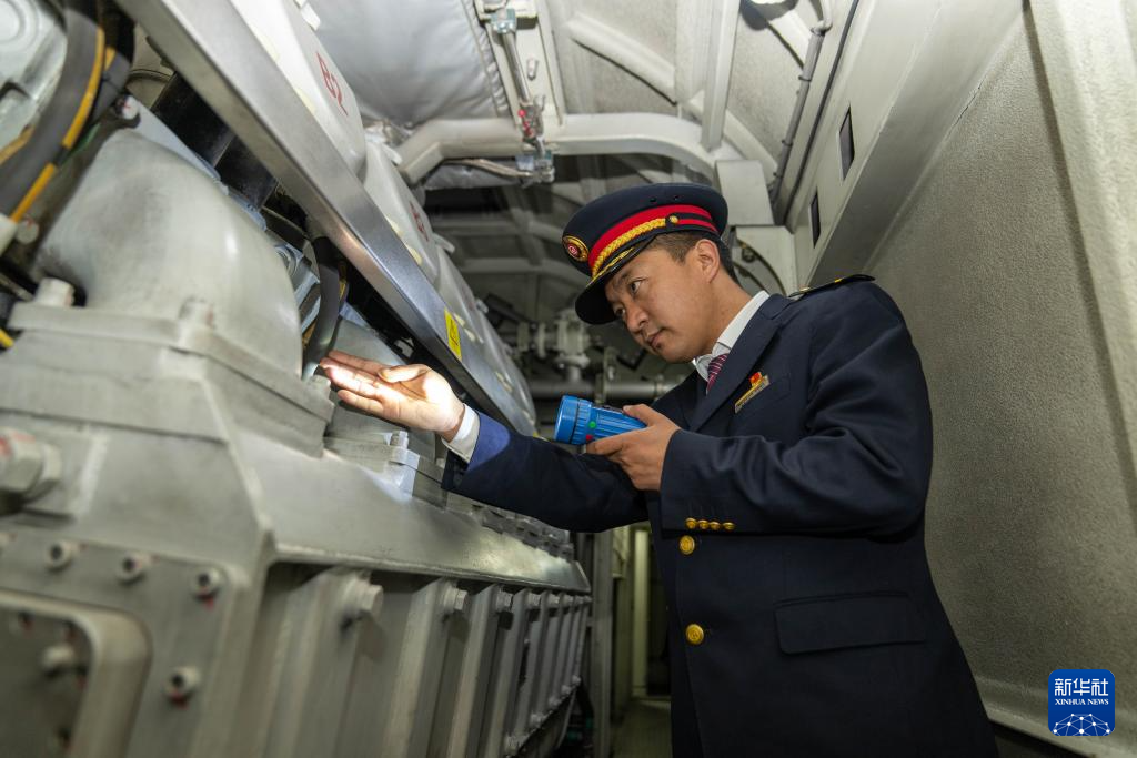 2月14日,斯朗旺扎在檢查機(jī)車機(jī)械間。新華社記者 旦增尼瑪曲珠 攝?