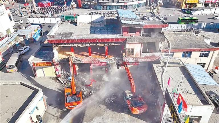 圖為山南市月光市場拆除現(xiàn)場。 記者 丹增平措 攝