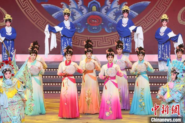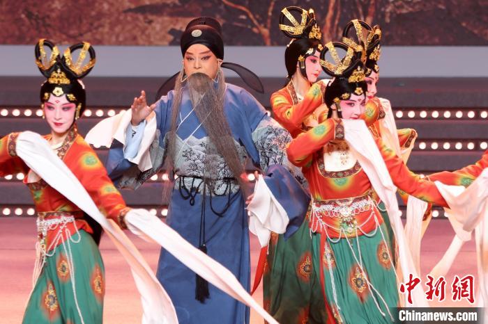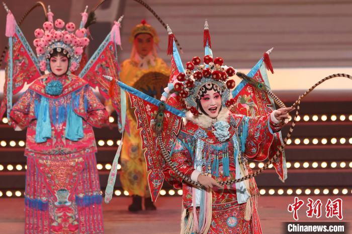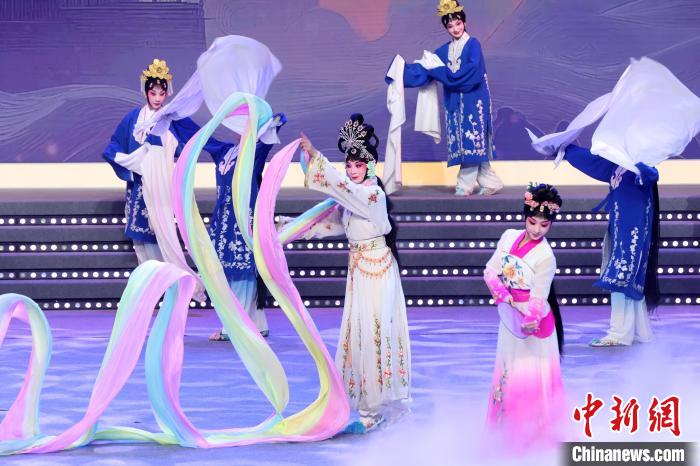 9月10日晚,2024江蘇中秋戲曲晚會在江蘇廣電荔枝大劇院上演,晚會緊扣“中秋”和“戲曲”兩大元素,將傳統(tǒng)節(jié)日內(nèi)涵與戲曲藝術(shù)融為一體,戲曲界各劇種名家陳少云、趙志剛、竺小招、周東亮、李奕潔、陳澄、李曉旭、施夏明等“梅花獎”“紫金文化獎章”“文華表演獎”獲得者輪番登臺,與近年來涌現(xiàn)出的優(yōu)秀青年演員同臺演出,凸顯戲曲文化的傳承與創(chuàng)新,為觀眾帶來一個流光溢彩的戲曲之夜。圖為戲曲演員們在舞臺上表演節(jié)目。中新社記者 泱波 攝