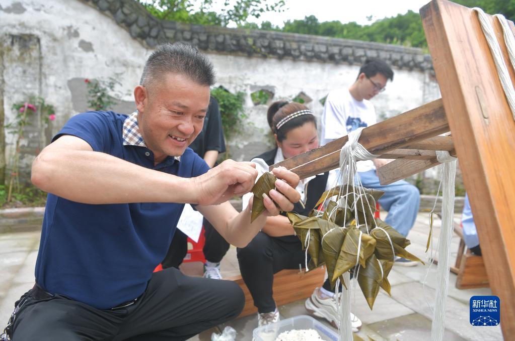 6月19日,村民參加四川省廣安市廣安區(qū)龍安鄉(xiāng)舉行的包粽子比賽。新華社發(fā)(張國(guó)盛 攝)