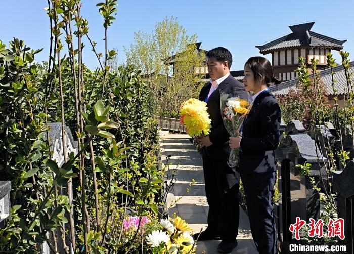 4月2日,大峪山生命紀念園工作人員介紹草坪安葬區(qū)的情況。俱凝搏攝