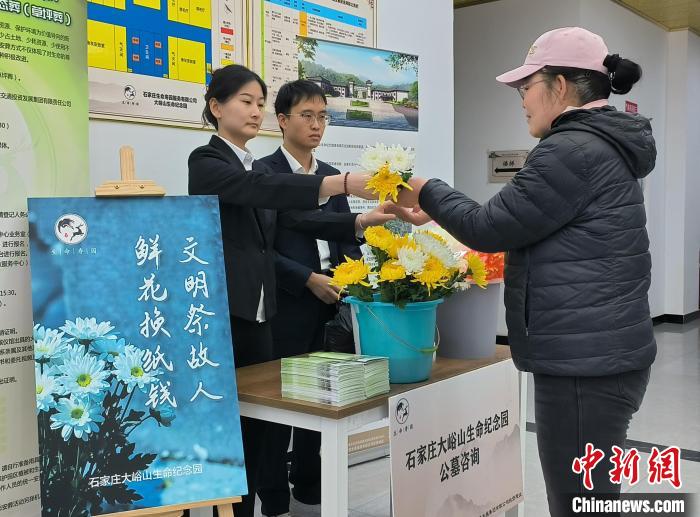 4月2日,工作人員提供鮮花換“紙錢”服務。俱凝搏攝