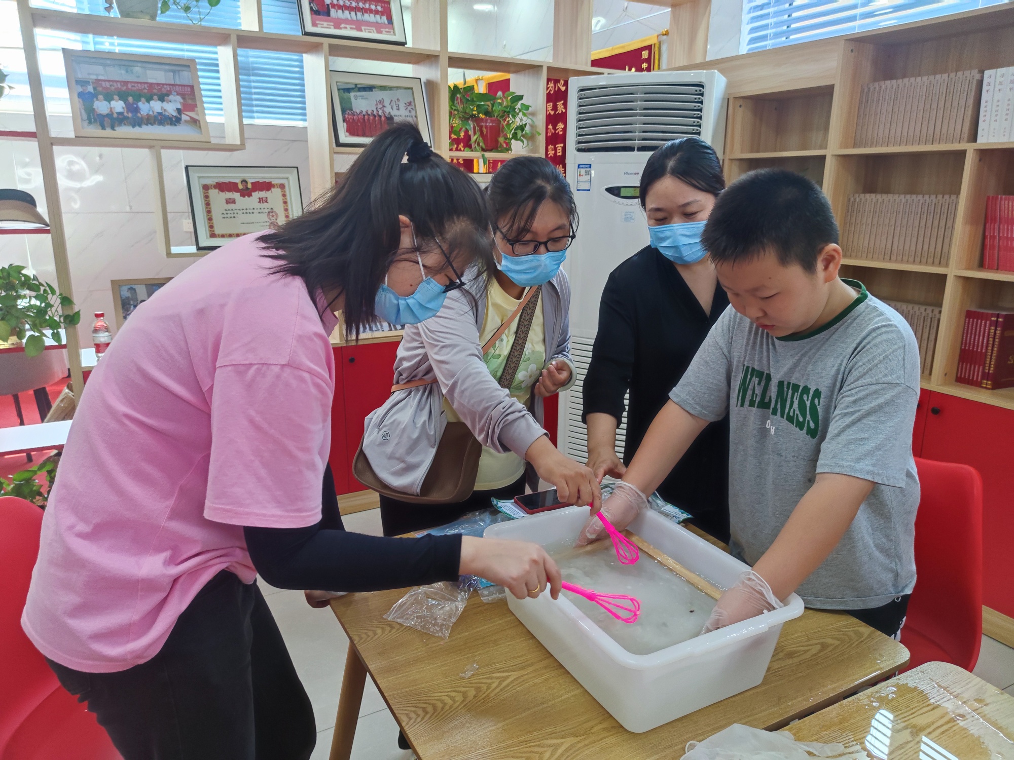 社區(qū)居民體驗(yàn)古法造紙技藝(王梓涵 攝)