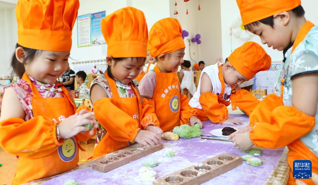 8月26日,在山東省臨沂市沂南縣雙堠鎮(zhèn)中心幼兒園,小朋友學(xué)做七夕巧果。新華社發(fā)(王彥冰 攝)