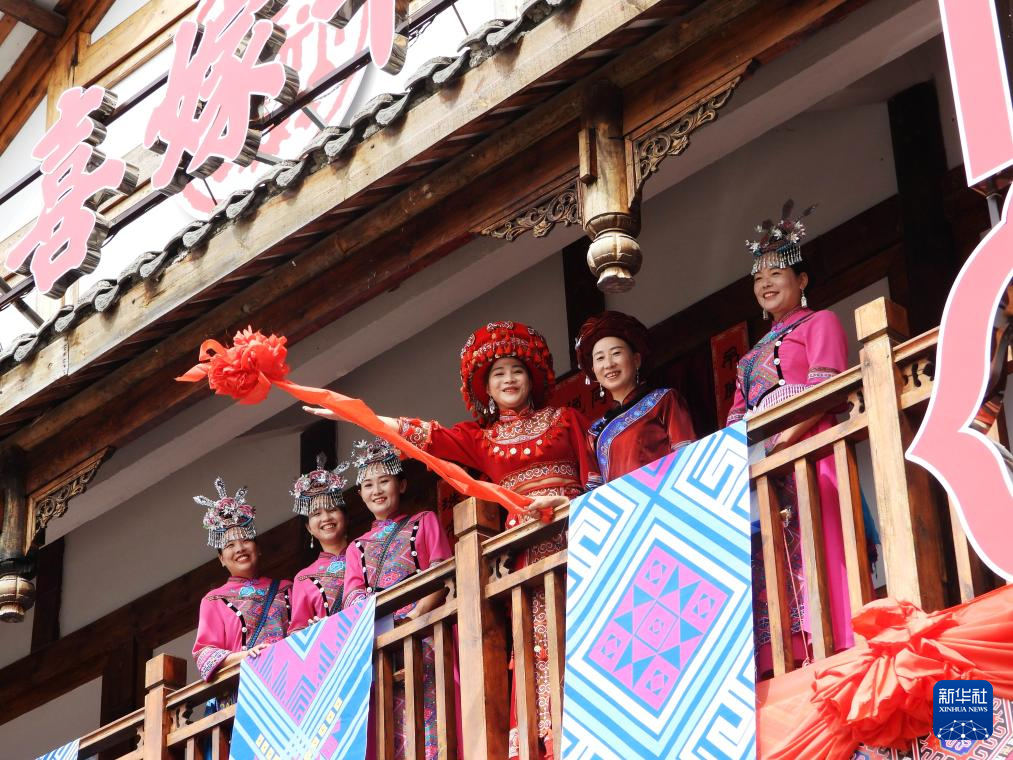 8月26日,在四川省達(dá)州市巴山大峽谷景區(qū),演員為游客表演迎七夕土家族婚嫁民俗。新華社發(fā)(鄧良奎 攝)