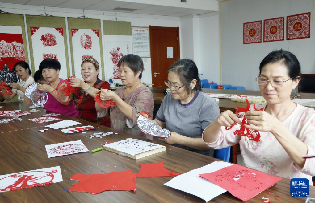 8月26日,在河南省洛陽(yáng)市汝陽(yáng)縣人民文化館,剪紙藝人創(chuàng)作七夕主題剪紙作品。新華社發(fā)(康紅軍 攝)