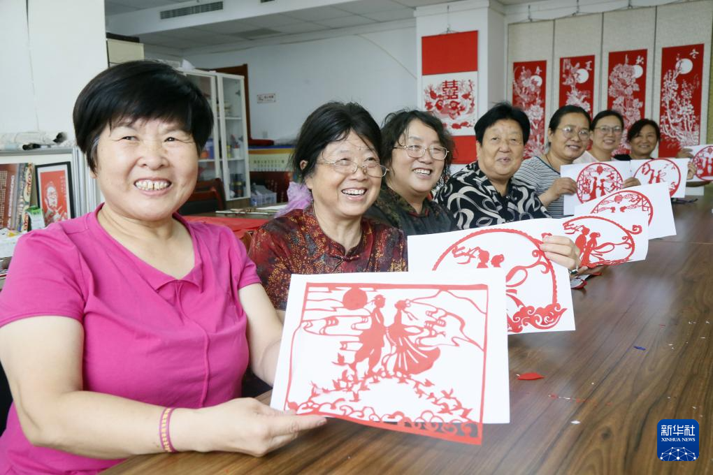 8月26日,在河南省洛陽(yáng)市汝陽(yáng)縣人民文化館,剪紙藝人展示七夕主題剪紙作品。新華社發(fā)(康紅軍 攝)