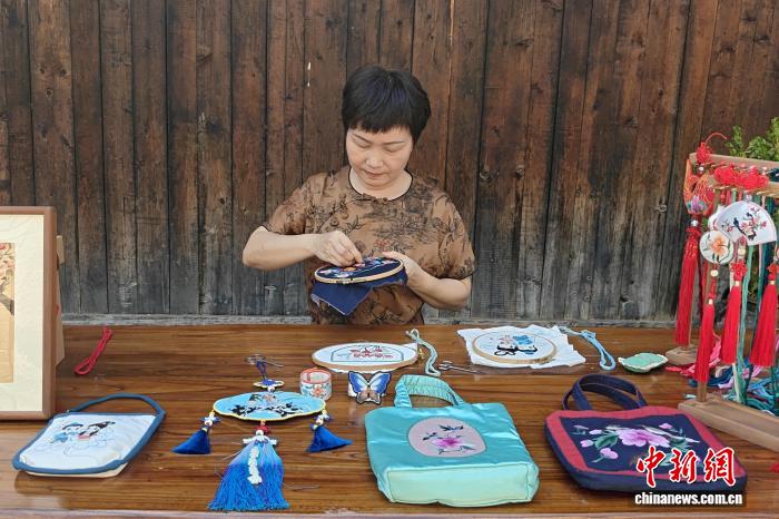 “刺繡圖案以動(dòng)植物、自然元素和文化符號(hào)組合而成,蘊(yùn)含祈福納吉的寓意。”張春梅將傳統(tǒng)技藝與現(xiàn)代審美相結(jié)合,繡制的服飾、手工布包、小掛飾、掛畫(huà)等頗受歡迎。
