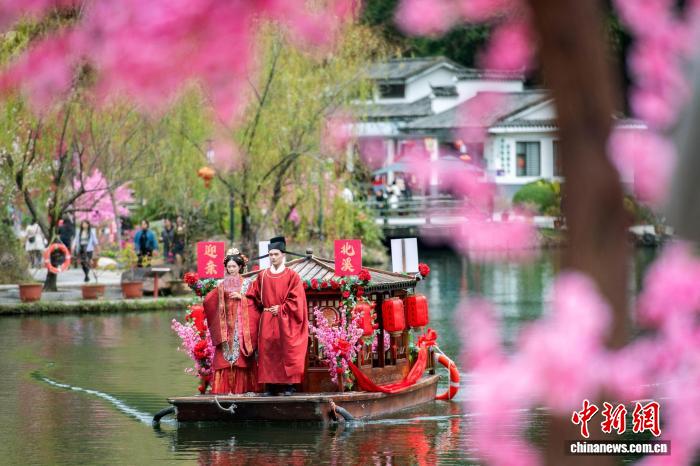 連日來(lái),“福建最美鄉(xiāng)村”永春縣北溪村桃花迎春綻放?!疤揖壉毕ゑR上宋囍”——第十五屆永春桃花季古風(fēng)姻緣會(huì)系列活動(dòng)27日在永春縣北溪文苑啟動(dòng),為海內(nèi)外游客打造沉浸式國(guó)潮文旅體驗(yàn),讓灼灼桃花成為當(dāng)?shù)匚穆媒?jīng)濟(jì)與鄉(xiāng)村振興的浪漫紐帶。