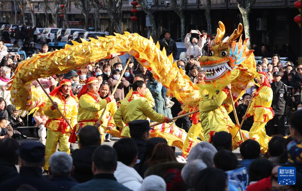 2月9日,民間藝人在浙江省湖州市德清縣乾元鎮(zhèn)進行舞龍表演。