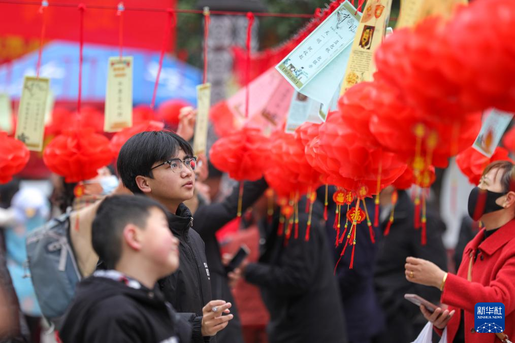 2月11日,湖南省衡陽市衡陽縣在明翰廣場開展猜燈謎活動,吸引眾多市民參與。