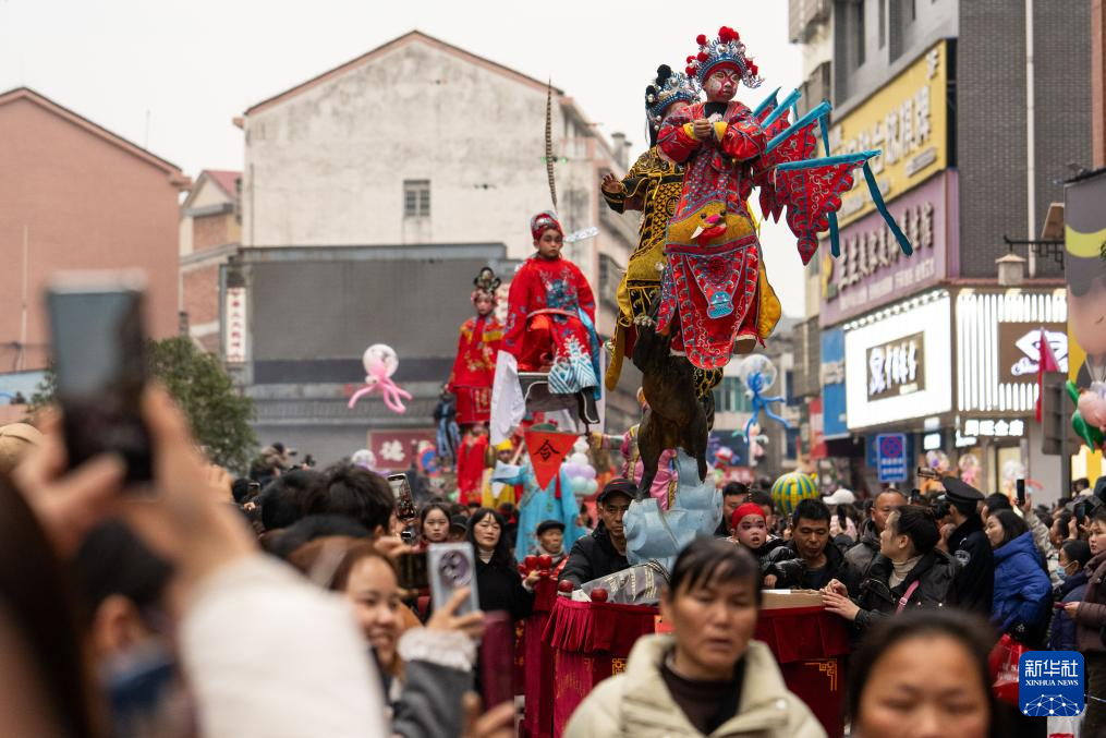 2月11日,在湖南省汨羅市長樂鎮(zhèn),人們參加抬閣故事會?!伴L樂抬閣故事會”是長樂鎮(zhèn)當?shù)匾豁梻鞒星甑脑?jié)民俗活動,2011年入選國家級非物質文化遺產擴展項目名錄。
