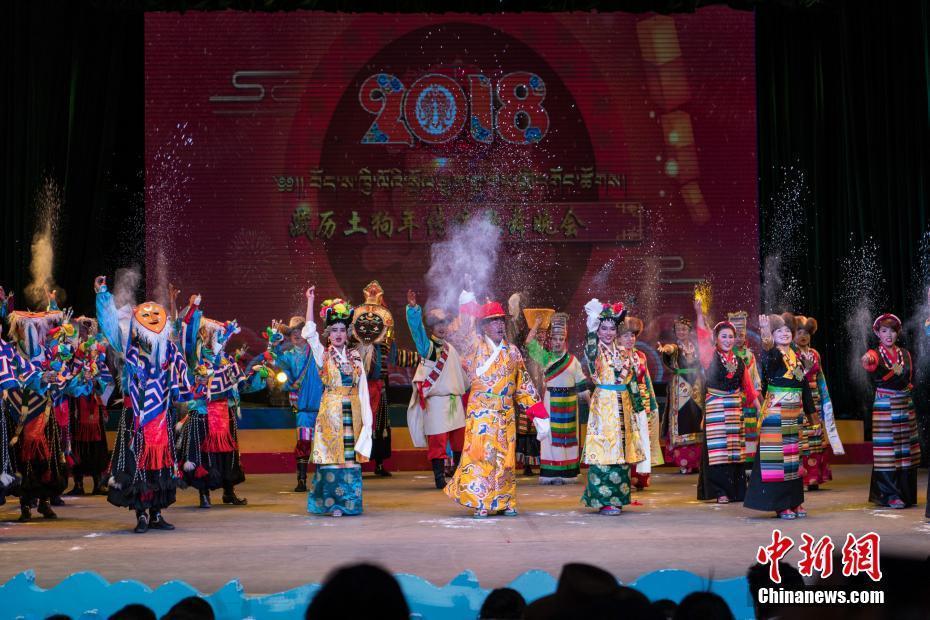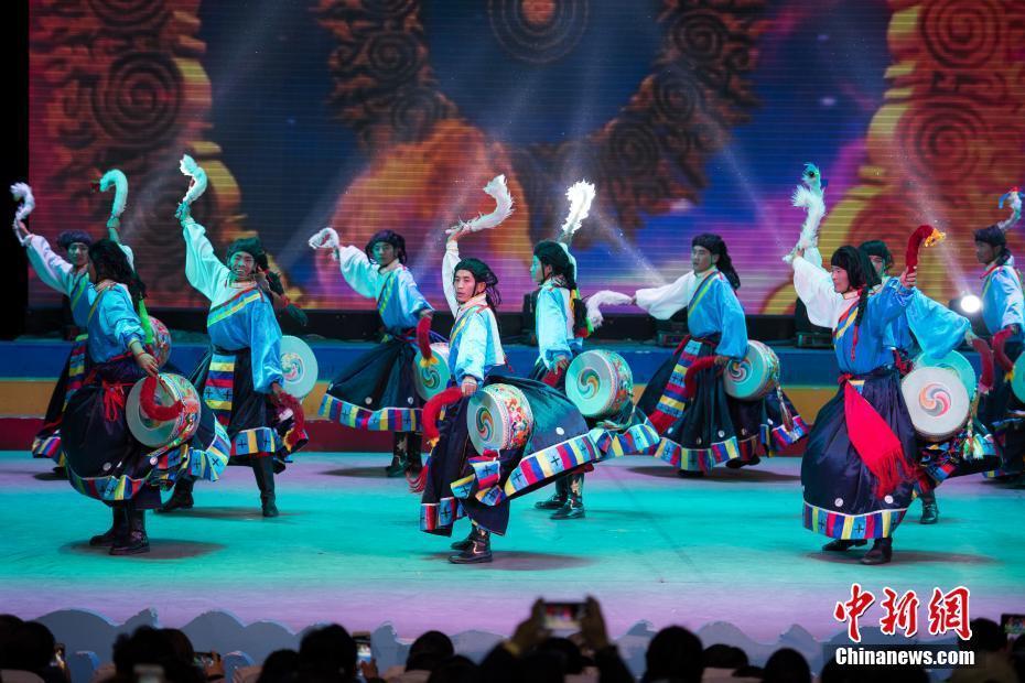 2月10日,隨著2018年春節(jié)和藏歷新年的日益臨近,西藏拉薩的節(jié)日氣氛越來越濃。當(dāng)晚一場(chǎng)傳統(tǒng)歌舞晚會(huì),提前為拉薩民眾送去新春的祝福。晚會(huì)以傳統(tǒng)藏戲、歌舞、小品等表演形式,把藏民族古老的藏戲、卓舞、鍋莊等非物質(zhì)文化遺產(chǎn)搬到了新年舞臺(tái)。圖為中國國家級(jí)非物質(zhì)文化遺產(chǎn)《卓舞》表演。中新社記者 何蓬磊 攝