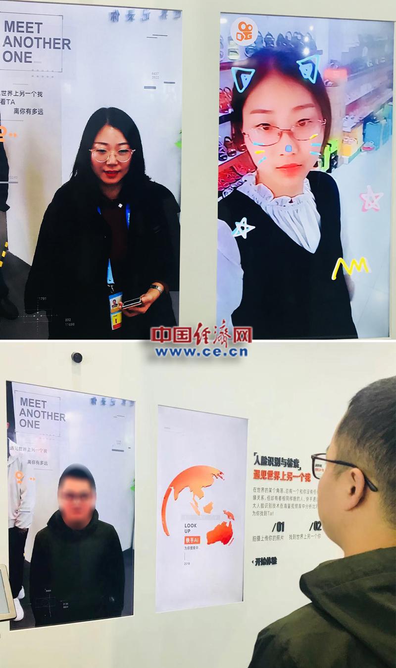 在茫茫人海之中找到與自己長相相似的人,就如大海撈針一般。在快手展臺(tái)上,記者體驗(yàn)了一回找到另一個(gè)自己的感覺,站在攝像頭前,倒計(jì)時(shí)3s后,左右兩塊屏幕上就分別出現(xiàn)了自己剛剛拍攝的照片和一個(gè)與自己長相非常相似的人。王婉瑩/攝