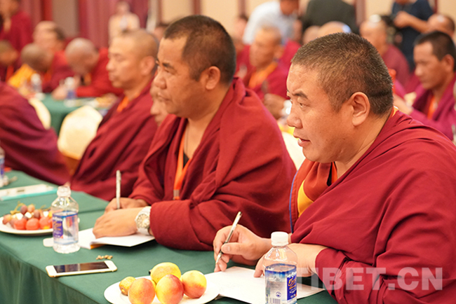 圖為山南市佛教協(xié)會(huì)會(huì)長(zhǎng)達(dá)娃次仁發(fā)言。攝影:王淑