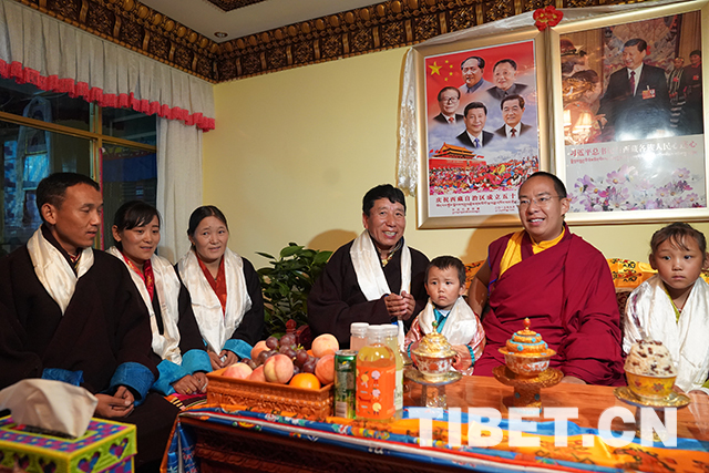打掃庭院、布置藏式客廳、擺放各種水果和飲品……為了恭迎十一世班禪的到來,達(dá)瓦一家一大早便忙碌起來。他說,“班禪仁波切來到我家,對于我們家來說是歷史性的時刻,是我們?nèi)胰诵迊淼母7??!?/p>