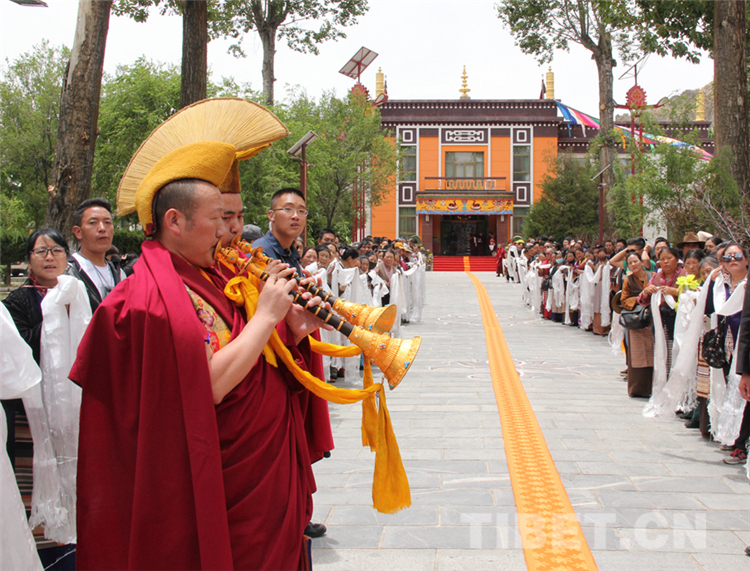 來自拉薩的僧眾代表和信教群眾代表,帶著虔誠和喜悅的心情,滿懷期待十一世班禪的到來。當(dāng)大院內(nèi)響起法號(hào)聲時(shí),早已在此等候的僧俗信教群眾紛紛翹首踮足,一睹十一世班禪的風(fēng)采。