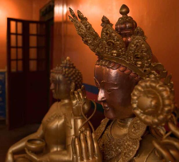 “雪堆白”金銅佛像鑄造材料特別,制作奢華。用黃金裝飾寺廟樓閣不是西藏的發(fā)明,但把這種風(fēng)尚完美地繼承下來(lái)并推上歷史頂峰,在今天富裕的物質(zhì)世界里仍放射璀璨的光彩,贏(yíng)得世界喝彩的只有西藏。