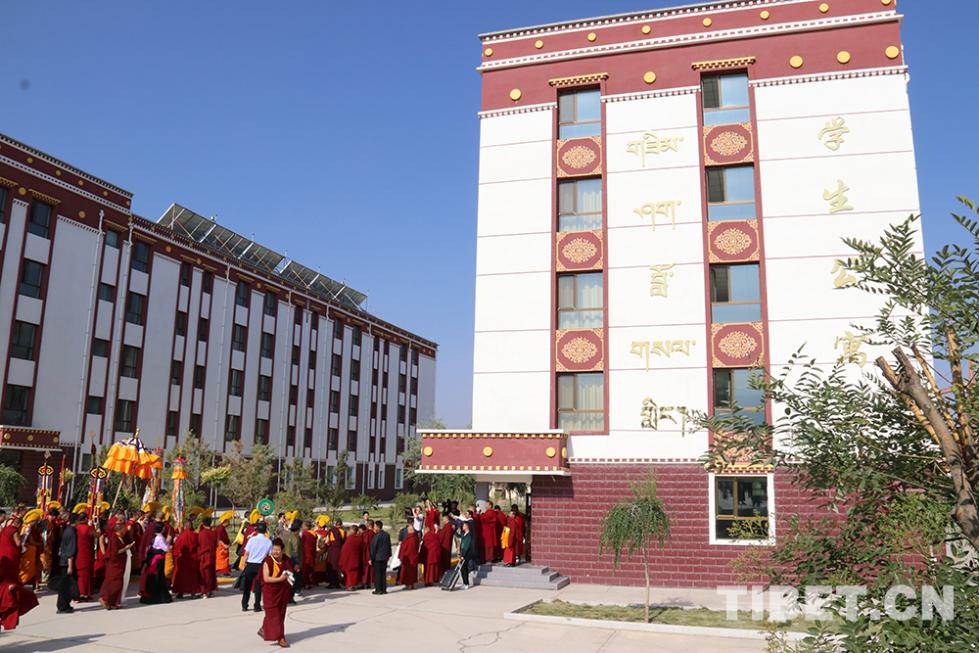 班禪大師此次前往位于貴德縣珍珠寺對(duì)面的青海省藏語(yǔ)系佛學(xué)院考察。青海省藏語(yǔ)系佛學(xué)院是由十世班禪大師倡議,1984年3月經(jīng)省人民政府批準(zhǔn),1986年9月在佛教圣地塔爾寺創(chuàng)辦的培養(yǎng)愛國(guó)愛教藏傳佛教高素質(zhì)僧才的地方性宗教院校,是藏傳佛教新的學(xué)銜制度具體實(shí)施單位和“智然巴”、“禪然巴”中級(jí)學(xué)銜和初級(jí)學(xué)銜授予單位。2014年國(guó)家投資1.16億元在海南州貴德縣新建佛學(xué)院,2016年3月交付使用,新學(xué)院建有教學(xué)與辦公一體的綜合樓、教職工公寓、學(xué)員宿舍、經(jīng)堂、佛塔、餐廳、風(fēng)雨操場(chǎng)等設(shè)施,水電暖網(wǎng)等設(shè)備齊全。