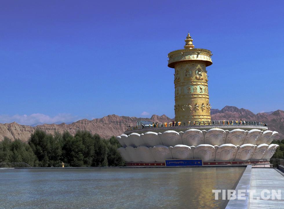 最后,班禪大師一行來到位于黃河岸邊的“中華福運(yùn)輪”,“中華福運(yùn)輪”轉(zhuǎn)經(jīng)輪主體高42米,于2012年獲頒吉尼斯世界紀(jì)錄?!爸腥A福運(yùn)輪”坐北向南,由黃河民俗博物館、倒影池、轉(zhuǎn)經(jīng)塔三部分組成。班禪大師一行,背對(duì)著翻騰著青色波濤的黃河坐下,面對(duì)著“中華福運(yùn)輪”,班禪帶領(lǐng)僧眾念誦祈愿經(jīng)文,祈禱世界和平、國(guó)泰民安、五谷豐登、眾生幸福。(中國(guó)西藏網(wǎng)文、圖/袁星宇)