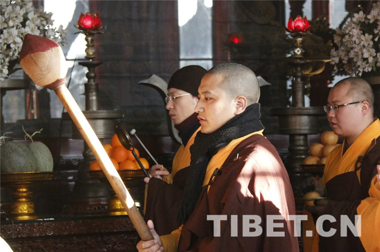 中國西藏網(wǎng)訊 今年適逢中國佛教協(xié)會名譽會長十世班禪大師圓寂30周年,1月28日上午9時,中國佛教協(xié)會及在京直屬寺院法師、工作人員、首都善信居士齊聚北京廣濟寺,隆重舉行紀念十世班禪大師圓寂30周年法會,深切緬懷十世班禪大師。法會禮請中國佛教協(xié)會演覺副會長、宗性副會長、祜巴等傣副會長主法,宏度副秘書長主持紀念儀式。三位法師拈香主法,帶領僧眾莊重誦經(jīng),圓滿完成法會儀軌。