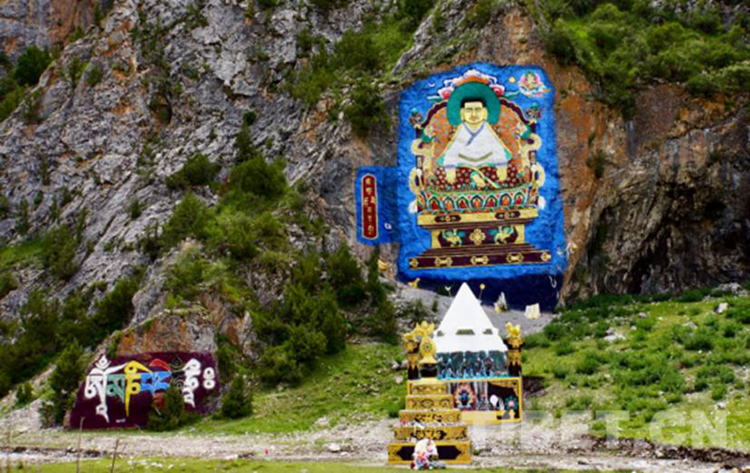 圖為拉薩千佛崖雕鑿在一整面山壁上
