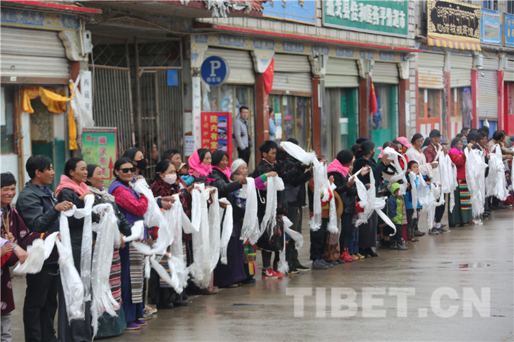 恰逢“羌塘恰青格薩爾賽馬藝術(shù)節(jié)”開幕,各地的僧俗信教群眾從方圓幾百公里的牧區(qū)趕來,他們身著盛裝,手捧哈達(dá),滿含期待地在那曲市道路兩邊恭迎全國政協(xié)常委、中國佛教協(xié)會副會長、中國佛教協(xié)會西藏分會會長班禪額爾德尼?確吉杰布重返家鄉(xiāng)那曲。