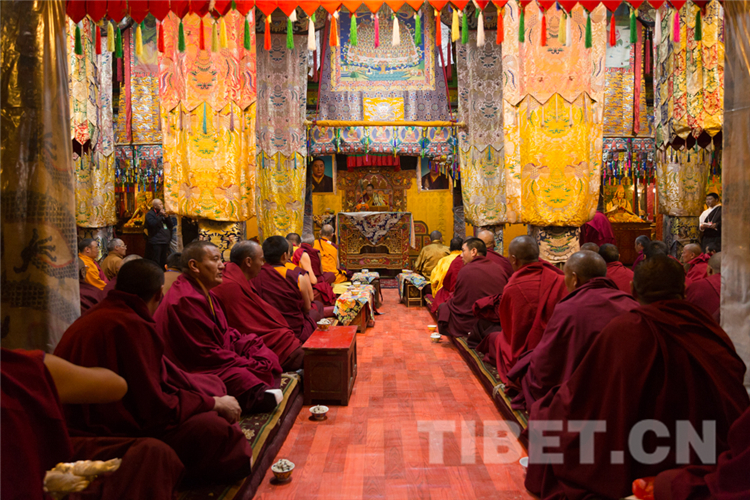 圖為十一世班禪帶領(lǐng)僧眾祈福 攝影:鄭朔