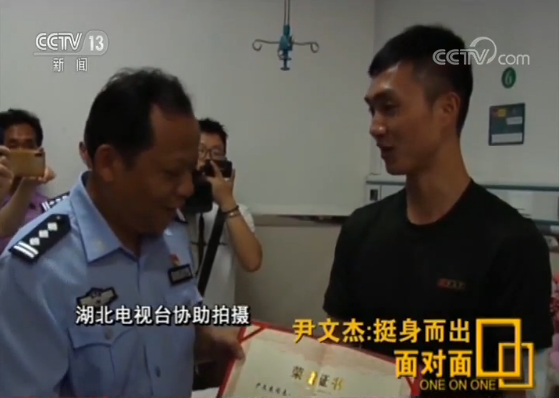 后來,尹文杰實(shí)在支撐不足,松開了抓歹徒的手。