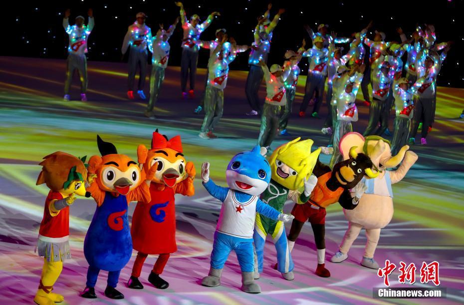 圖為各屆軍運會的吉祥物亮相閉幕式。 中新社記者 張暢 攝