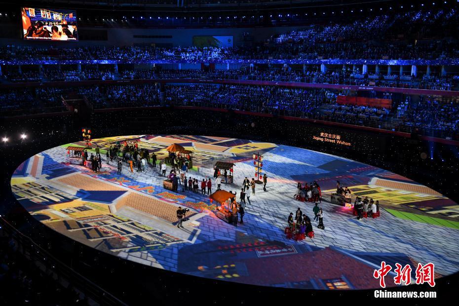 10月27日晚,第七屆世界軍人運動會在湖北省武漢市閉幕。圖為閉幕式現(xiàn)場。 中新社記者 何蓬磊 攝