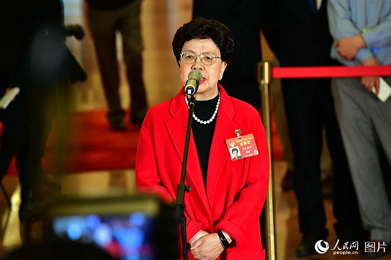 全國政協(xié)委員、博鰲論壇咨委與全球健康大會主席陳馮富珍接受記者采訪。人民網(wǎng)記者 于凱 攝
