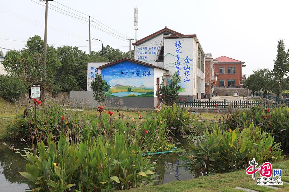 在長沙市望城區(qū)靖港鎮(zhèn)復(fù)勝村一戶民居的墻上,“綠水青山就是金山銀山”的標(biāo)語在清澈的溝渠邊格外顯眼。中國網(wǎng)記者 倫曉璇 攝
