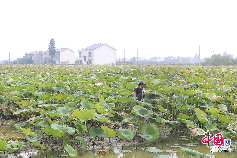 在望城區(qū)喬口鎮(zhèn)盤龍嶺村,“荷蝦種養(yǎng)結(jié)合”的綠色生態(tài)模式融合經(jīng)濟(jì)效益和觀賞價(jià)值。中國網(wǎng)記者 倫曉璇 攝
