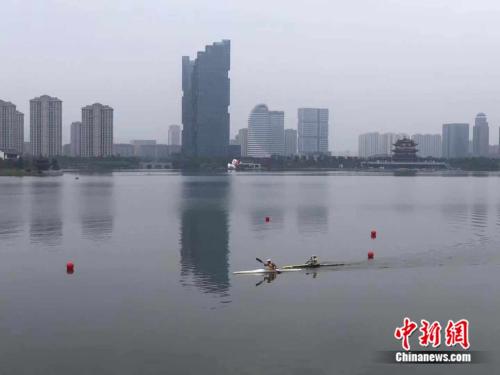 皮劃艇運動員在迪蕩湖上進行練習。 冷昊陽 攝