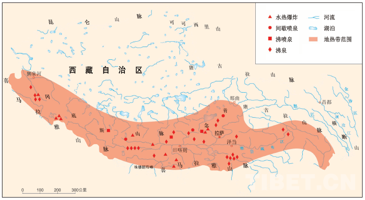 地?zé)崾莵?lái)自地球內(nèi)部的一種天然熱能,與太陽(yáng)能、風(fēng)能等新能源一樣,是清潔能源、可再生能源。地球內(nèi)部熱量通過(guò)地下水和熔融巖近距離涌至地殼,熱力得以傳導(dǎo)地面。地?zé)岙惓^(qū)或稱(chēng)地?zé)釒?,主要分布在板塊生長(zhǎng)、開(kāi)裂的大洋擴(kuò)張脊和板塊碰撞及其消減、衰亡帶部位。據(jù)現(xiàn)有資料,中國(guó)地?zé)豳Y源量占全球地?zé)豳Y源總量的1/6;西藏是中國(guó)地?zé)峄顒?dòng)最強(qiáng)烈地區(qū),地?zé)醿?chǔ)藏量居全國(guó)首位,700多處地?zé)犸@示區(qū)中,近半數(shù)具有開(kāi)發(fā)利用價(jià)值。其中高溫地?zé)豳Y源,在全國(guó)總量中占比80%,羊八井地?zé)崽锸侵袊?guó)最大的高溫濕蒸汽熱田,率先進(jìn)行了地?zé)岚l(fā)電的可貴嘗試。