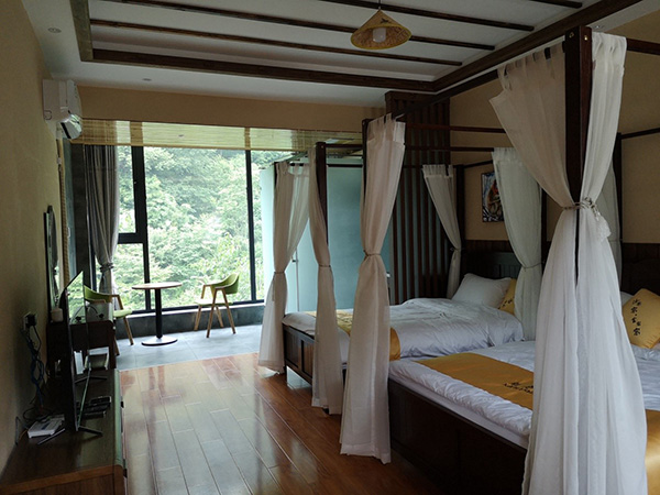 2016年,看到這一前景的代輝決定回鄉(xiāng),投入40萬元給自家平房加蓋一層,裝修出三間屋子當做客房。其中,自籌20萬,貸款20萬,享有三年貼息貸款優(yōu)惠,由政府貼息7%。代輝還有烹飪手藝,村里辦紅白事總請他當主廚,因此,農(nóng)家樂既是旅店又是餐館,生意一點不愁,“旺季一天能有30來人,住宿總是滿員,至少提前一周預定,一年下來能賺7-8萬塊。”
