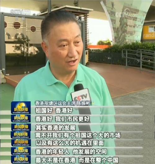 香港各界人士表示,國慶臨近,希望大家能夠同心共賀新中國成立70周年。他們表示,粵港澳大灣區(qū)給香港青年的發(fā)展提供了更廣闊的舞臺和空間,希望青年人能夠把握未來發(fā)展機遇。