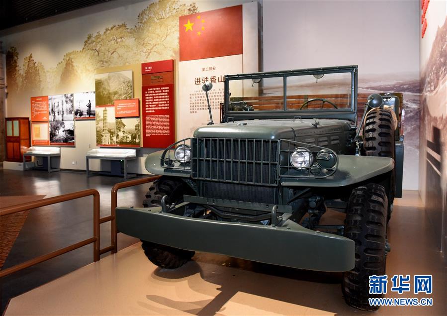 這是香山革命紀念館中,《為新中國奠基——中共中央在香山》主題展覽展出的中共中央遷駐香山時使用的同型吉普車(9月7日攝)。新華社發(fā)(任超 攝)