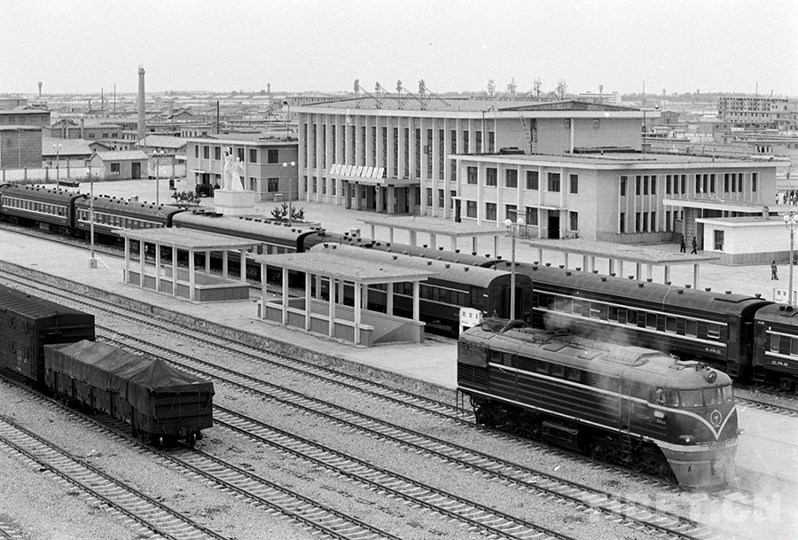 青藏鐵路一期工程西寧至格爾木段于1984年建成通車。這是新通車后的格爾木車站(唐召明1987年攝)