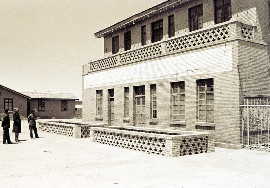幾位游客在觀看慕生忠將軍曾生活、工作過(guò)的樓房。這座將軍樓也是格爾木市的第一座樓房(唐召明1987年攝)